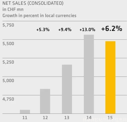 近日,世界防水材料巨頭西卡(Sika)發(fā)布了2015年度報(bào)告,按當(dāng)?shù)刎泿庞?jì)算,西卡全球2015年銷(xiāo)售額同比增長(zhǎng)6.2%,達(dá)54.892億瑞士法郎,約人民幣360.36億元;息稅前利潤(rùn)為6.733億瑞士法郎,同比增長(zhǎng)12.3%;凈利潤(rùn)為4.651億瑞士法郎,同比增長(zhǎng)8.5%。