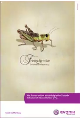 2008年,CVC資本取得了贏創(chuàng)25.1%股權(quán),分析師計(jì)算的CVC資本投資額約為24億歐元,雖然這一交易實(shí)際上在2004年就受到受到了公開(kāi)批評(píng),有德國(guó)立委將CVC資本比作一只蝗蟲(chóng),但2008年達(dá)成協(xié)議后雙方仍認(rèn)為這是一個(gè)雙贏的結(jié)果,贏創(chuàng)為此還特別發(fā)布了一個(gè)微笑蝗蟲(chóng)的宣傳頁(yè),表示與新伙伴CVC的合作前景一片光明。