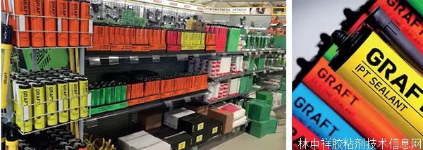 令人眼花繚亂的膠粘劑、密封劑貨架