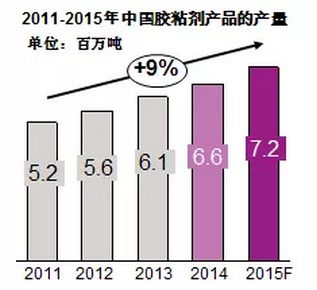 過去的幾年里,我國膠粘劑和密封劑的產(chǎn)量和銷售額均呈現(xiàn)高速增長的趨勢,產(chǎn)量的年均增長率達(dá)9%。根據(jù)今年9月召開的膠粘劑年會,協(xié)會與業(yè)內(nèi)專家普遍認(rèn)為在“十三五”期間,我國膠粘劑的產(chǎn)量仍將爆出年均7.8%的增長,在2020年末實(shí)現(xiàn)1033.7萬噸的產(chǎn)量。相對于新常態(tài)下6.5%的GDP,我們還是有理由堅定看好膠粘劑行業(yè)的。