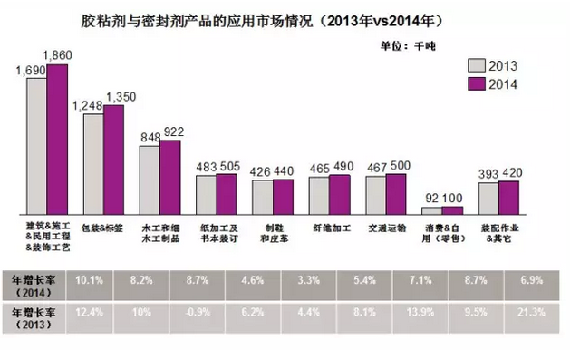 目前,我國膠粘劑及密封劑的最大消費(fèi)市場是建筑建材和室內(nèi)外裝飾裝修行業(yè),其次是包裝和標(biāo)簽行業(yè)。而根據(jù)協(xié)會在膠粘劑年會上的報道,市場需求增長較快的是裝配(包括電子電器、儀器儀表、機(jī)械設(shè)備、航空航天等)和交通運(yùn)輸行業(yè)。水基型、熱熔型、無溶劑型、紫外光固化型、高固含量型及生物降解型等環(huán)境友好型產(chǎn)品,是未來鼓勵、重點(diǎn)投資方向。