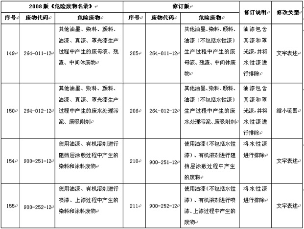 一直以來,生產(chǎn)和使用水性涂料過程中產(chǎn)生的廢物被列為危險廢物,影響了我國水性涂料的推廣與應(yīng)用。經(jīng)過中國涂料工業(yè)協(xié)會多次與相關(guān)國家部委反應(yīng)情況,根據(jù)收到的國家工信部節(jié)能司“關(guān)于征求《國家危險廢物名錄(修訂)》(報批稿)意見的函”,在最近新修訂的《國家危險廢物名錄(修訂)》(報批稿)中,將涂料生產(chǎn)和使用環(huán)節(jié)產(chǎn)生危險廢物的條目中加入“不包括水性漆”的括號注釋,即水性涂料生產(chǎn)和使用過程中產(chǎn)生的廢物將不被列為危險廢物。此《國家危險廢物名錄(修訂)》將在國家相關(guān)主管部門審批后正式發(fā)布并實施。