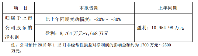 1.業(yè)績(jī)預(yù)告期間:2015 年 1 月 1 日—2015 年 12 月 31 日