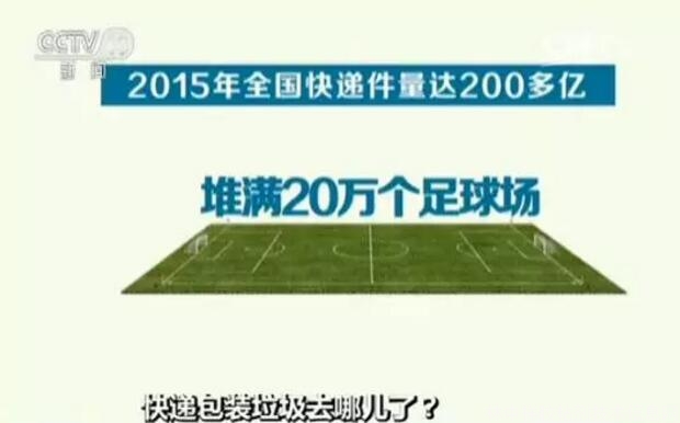 國(guó)家郵政局統(tǒng)計(jì),2015年全國(guó)快遞業(yè)務(wù)量完成206億件,最高日處理量超過(guò)1.6億件。按平均一個(gè)包裹的包裝箱0.2公斤計(jì)算,去年產(chǎn)生了40萬(wàn)噸的包裝箱,可以堆滿(mǎn)20萬(wàn)個(gè)足球場(chǎng)。預(yù)計(jì)2016年中國(guó)快遞業(yè)務(wù)量將完成275億件。