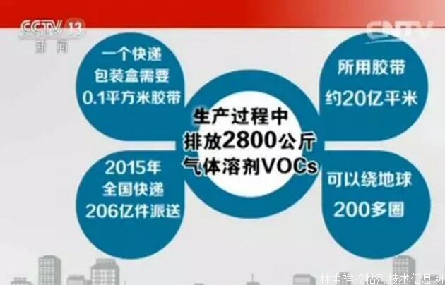 而按照一個(gè)快遞包裝盒需要0.1平方米膠帶計(jì)算,2015年所用膠帶約20億平米,可以繞地球200多圈,這些膠帶在生產(chǎn)過(guò)程中就會(huì)排放出2800公斤氣體溶劑VOCs。如果焚燒,VOCs會(huì)污染空氣破壞臭氧層形成霾狀物。