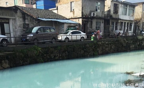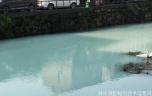 浙江溫州河水被膠水污染變奶綠色