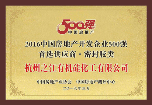 3月22日,由中國房地產(chǎn)業(yè)協(xié)會、中國房地產(chǎn)測評中心聯(lián)合主辦的2016年中國房地產(chǎn)500強測評成果發(fā)布會在北京國貿(mào)大酒店隆重舉行。備受關(guān)注的“2016中國房地產(chǎn)開發(fā)企業(yè)500強”測評成果及“2016中國房地產(chǎn)開發(fā)企業(yè)500強首選供應商品牌”測評成果在會中發(fā)布,杭州之江有機硅化工有限公司再次獲得中國房地產(chǎn)開發(fā)企業(yè)500強密封膠首選供應商榜單第一名。