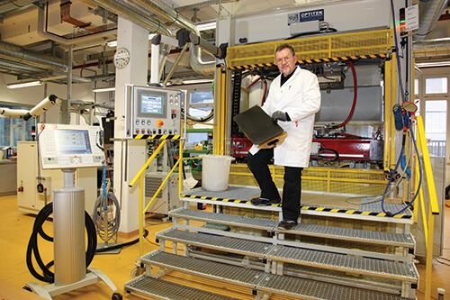據(jù)亨斯邁介紹,該樹(shù)脂在140℃下僅30s就可固化,這使得1min內(nèi)復(fù)合材料成型工藝成為可能。為此,亨斯邁還開(kāi)發(fā)了與該樹(shù)脂配套的動(dòng)態(tài)流體壓縮成型(dynamic fluid compression molding,DFCM),該工藝可以省去高壓注塑工藝,而且在很多情況下也可省略纖維預(yù)浸料工藝。與常規(guī)濕發(fā)壓縮成型(wet-compression molding,WCM)相比,該工藝的主要優(yōu)點(diǎn)之一是可以減少層壓板層間縫隙,復(fù)合材料孔隙率低于1%,性能可媲美高壓的RTM工藝,且高達(dá)66%纖維體積含量(FVC)的復(fù)合材料可以在沒(méi)有特殊處理的條件來(lái)實(shí)現(xiàn)。