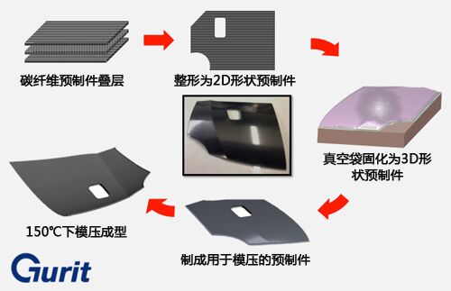 2015年底,Gurit UK(英國(guó)固瑞特)也推出了“瞬間固化”環(huán)氧樹(shù)脂,但不同于其他針對(duì)RTM或濕壓縮成型工藝開(kāi)發(fā)的樹(shù)脂,其樹(shù)脂配方主要用于成套預(yù)浸料和熱進(jìn)/熱出沖壓成型(hot-in/hot out press molding)工藝。雖然該工藝固化周期需要 5min,但報(bào)道稱其制造的部件表面可達(dá)A級(jí),無(wú)需模具后處理。