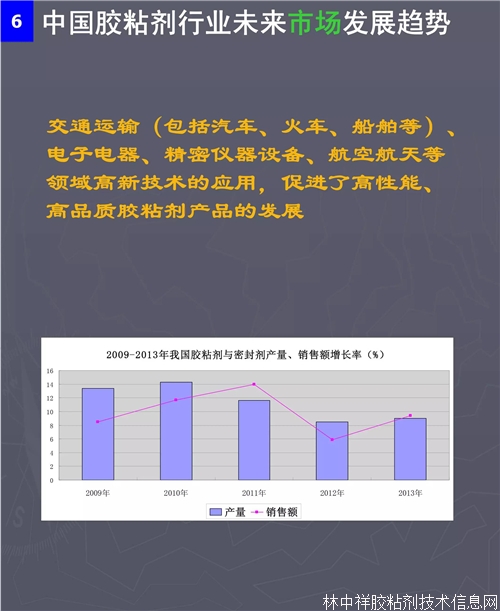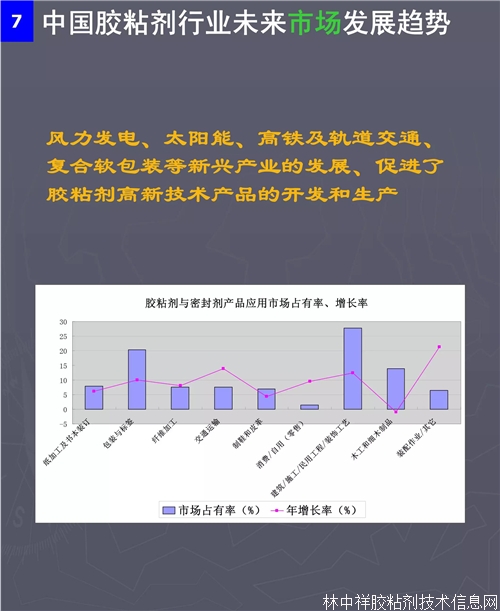 未來全球膠粘劑市場、生產(chǎn)、消費(fèi)重心將轉(zhuǎn)向亞洲,轉(zhuǎn)向中國。汽車、新能源(太陽能和風(fēng)力發(fā)電)、軌道交通、電子電器、軟包裝等新興領(lǐng)域?qū)又袊z粘劑行業(yè)的快速發(fā)展。“十三五”規(guī)劃將要求我們更加關(guān)注民生領(lǐng)域,發(fā)展高新技術(shù),重視節(jié)能環(huán)保,促進(jìn)膠粘劑和膠粘帶產(chǎn)品具有雙重性能(使用性和環(huán)保性),堅(jiān)持可持續(xù)發(fā)展。科技創(chuàng)新、技術(shù)進(jìn)步、合作共贏是未來發(fā)展的主流,熱熔型膠粘劑、有機(jī)硅膠粘劑、聚氨酯膠粘劑、乳液型丙烯酸酯壓敏膠等品種的應(yīng)用領(lǐng)域不斷擴(kuò)展,是未來增長熱點(diǎn)。