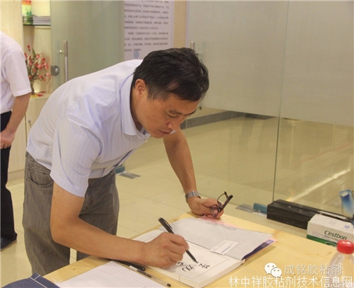 15:00,專家學(xué)者們抵達成銘科技園,他們首先被園區(qū)內(nèi)美麗的環(huán)境所吸引,稱贊成銘科技園是“花園式工廠”。在簡短的歡迎儀式后,專家學(xué)者們在成銘熱熔膠博物館館長王賢勝先生的導(dǎo)領(lǐng)講解下,參觀了成銘熱熔膠博物館,在參觀的過程中便對博物館的布局之合理、內(nèi)容之豐富連連稱贊,并為博物館提詞寄語留念。之后,在成銘公司鄧小華副總經(jīng)理的導(dǎo)引講解下參觀了成銘創(chuàng)新中心,專家們對于設(shè)備齊全、功能全面的成銘創(chuàng)新中心給予了高度評價,并提出了一些好的建議。由于專家們對博物館和成銘創(chuàng)新中心有著濃厚的興趣,經(jīng)過專家們的一致同意,座談會的時間整整推遲了一個小時。