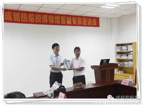 16:30分,成銘熱熔膠博物館答謝專家座談會在成銘書屋舉行,成銘熱熔膠博物館館長王賢勝先生、成銘公司總經(jīng)理陳銘先生、副總經(jīng)理鄧小華先生參加了座談會。王賢勝館長做了簡短致詞,說明了組織本次會議的目的和意義,表達了對專家學(xué)者們的熱烈歡迎和由衷的感謝。之后,陳銘總經(jīng)理向?qū)<覀兒喴榻B了成銘公司的發(fā)展情況與未來的計劃,專家學(xué)者們紛紛對成銘熱熔膠博物館建成和運行的重大意義及良好的社會反響給予表揚,同時也就一些博物館的細節(jié)和發(fā)展方向問題提出了專業(yè)而中肯的建議和意見并各自介紹了自己的研究領(lǐng)域及取得的研究成果,還就中國膠粘劑行業(yè)健康發(fā)展問題發(fā)表了各自最前沿的看法,并就“創(chuàng)新、研究、定位、人才”等話題進行了討論。這為成銘熱熔膠博物館的完善與提升指明了的方向,也為成銘公司的發(fā)展提供了很好的參考。