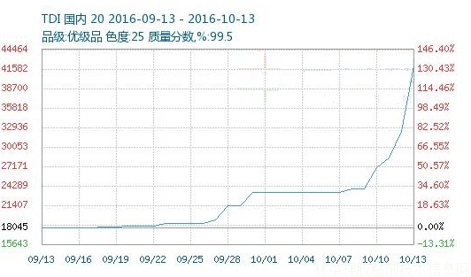 數(shù)據(jù)顯示,TDI參考價為42062.50元/噸,與10月1日(23363.64)相比,上漲了80.03%。