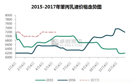 短期受成本支撐下,我們預(yù)計(jì)2017年國內(nèi)丙烯酸乳液價(jià)格維持在9500-10000元/噸水平,但日照廣大ˎ保利佳等廠家紛紛新建或擴(kuò)建產(chǎn)能,場內(nèi)供應(yīng)充足,市場競爭愈加激烈。2017年整年不排除下滑可能。