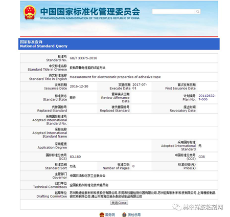 GB/T 33375-2016《膠粘帶靜電性能的試驗(yàn)方法》將于2017年7月1日起正式實(shí)施。