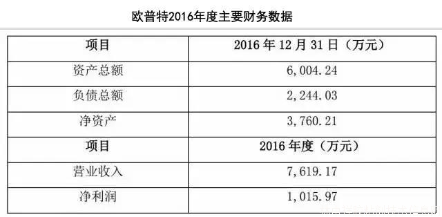 數(shù)據(jù)顯示,歐普特2016年實(shí)現(xiàn)營(yíng)收7619.17萬(wàn)元,凈利潤(rùn)為1015.97萬(wàn)元。