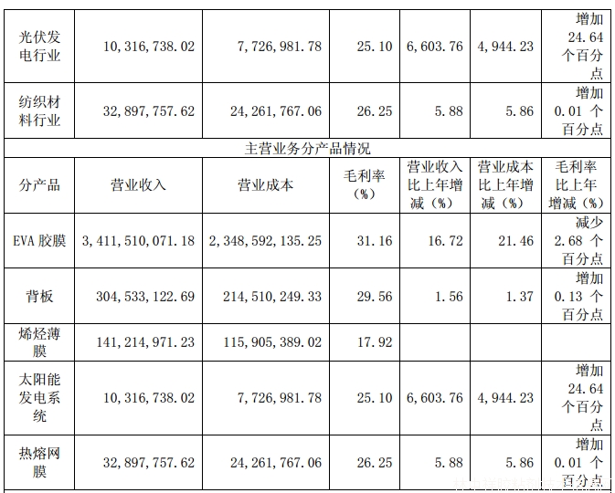 福斯特主營業(yè)務為光伏封裝材料的研發(fā)、生產(chǎn)和銷售。光伏封裝膠膜和背板是太陽能電池組件關鍵封裝材料,對太陽能電池組件起到封裝和保護的作用,能提高組件的光電轉換效率,并延長組件的使用壽命。