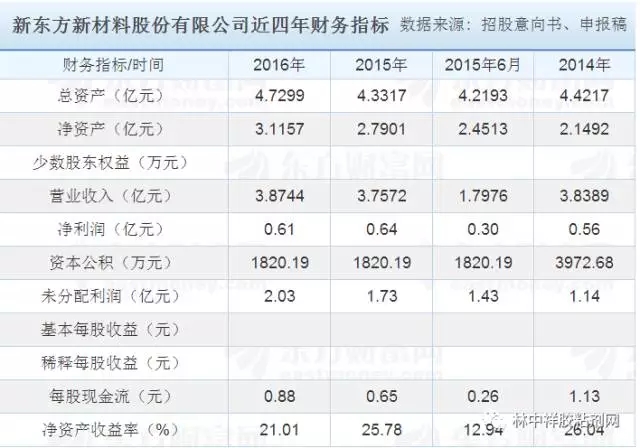 招股書顯示,新東方新材料是一家專業(yè)從事油墨和膠粘劑生產(chǎn)的企業(yè)。2014-2016年,公司實(shí)現(xiàn)營收3.84億元、3.76億元、3.87億元;同期凈利潤分別是0.56億元、0.64億元、0.61億元。