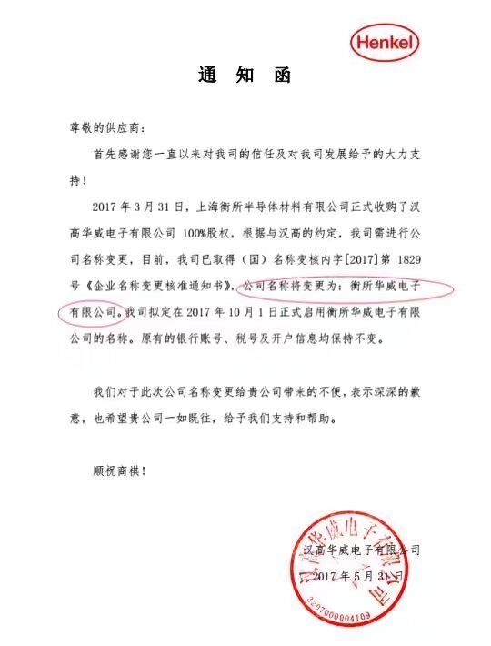 漢高華威正式更名為衡所華威電子有限公司,,兩次被收購再次國產(chǎn)化.