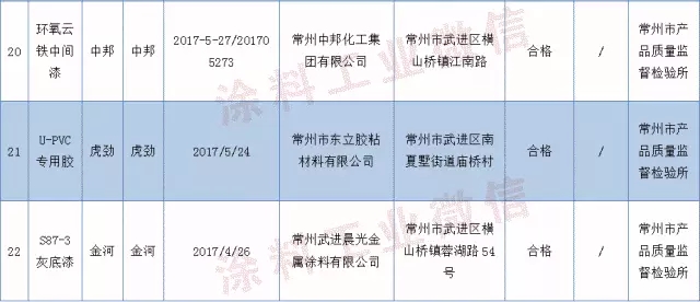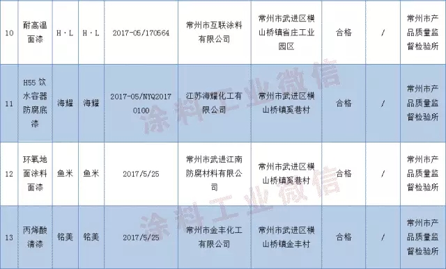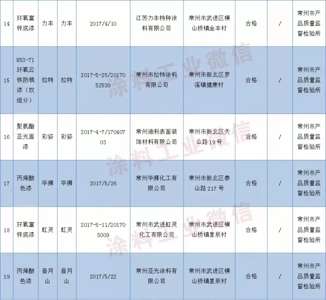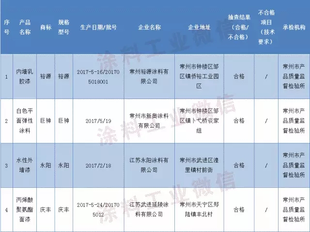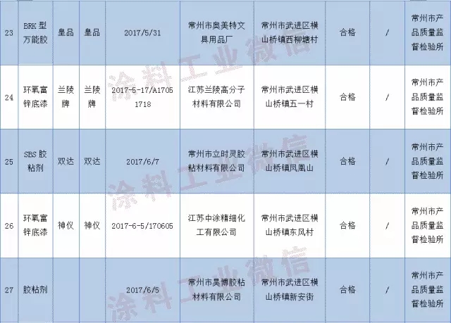 2017年涂料、膠粘劑產(chǎn)品質(zhì)量市級監(jiān)督抽查結(jié)果
