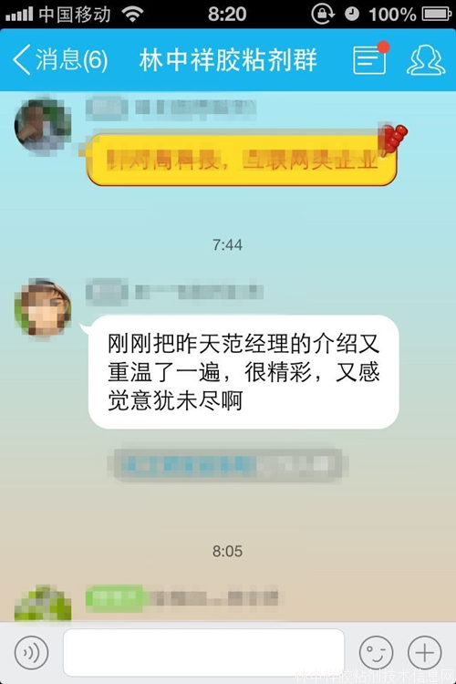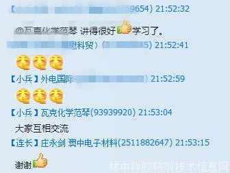 林中祥膠粘劑群(群號(hào):417857029)是自由開放的的交流平臺(tái),我們歡迎更多的同仁到群上與大家交流,分享!感謝大家的關(guān)注與支持!