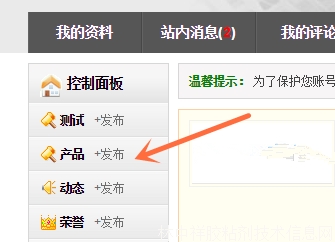 首先登陸您的會(huì)員中心(備注:這可是企業(yè)會(huì)員才有的福利哦),點(diǎn)擊左邊:產(chǎn)品發(fā)布,進(jìn)入發(fā)布頁面。如下圖: