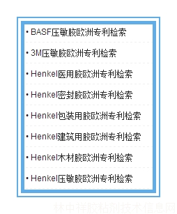 (3)跟蹤漢高、巴斯夫、3M等知名企業(yè)膠粘劑領(lǐng)域最新專利狀況