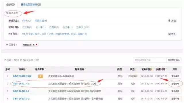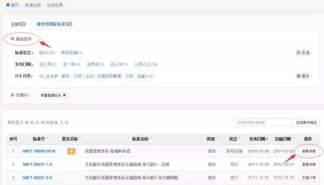 登錄該系統(tǒng)后,在 檢索 處輸入你想查閱的標準關鍵詞,如質量管理體系。