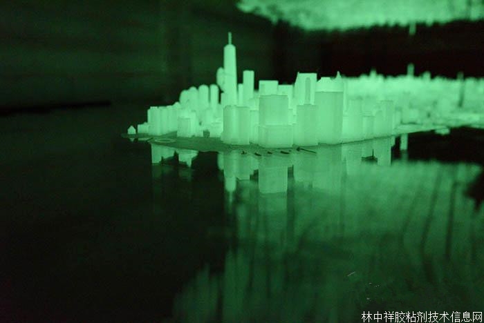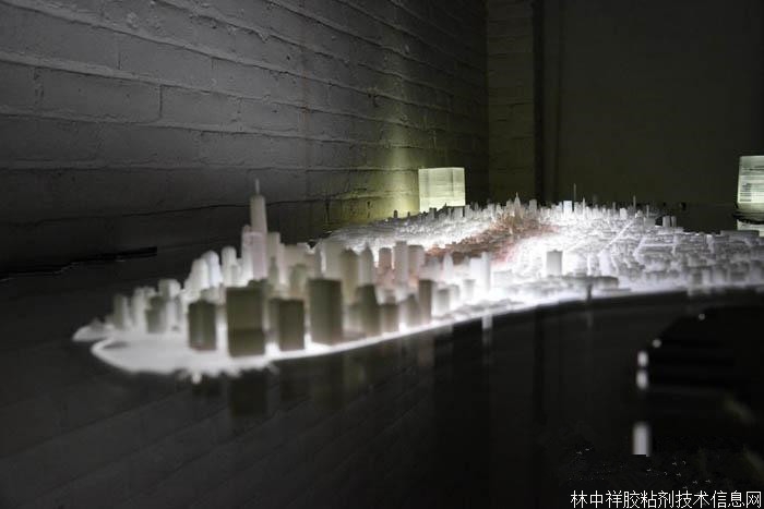 當(dāng)所有的街區(qū)與建筑打印完畢之后,Huang使用一種名為Weld-On 4的丙烯酸膠粘劑將其粘合在一起,并在整個(gè)城市的下方安裝了LED條,點(diǎn)亮后建筑物會(huì)從底下向上發(fā)光。為了模擬曼哈頓島周圍的哈德遜河水,Huang使用了一種液態(tài)的丙烯酸,它在硬化后會(huì)變得透明,可以反射出建筑模型發(fā)出的光影。