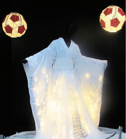 在展會(huì)上,該公司展示了使用導(dǎo)電漿料在布料上直接繪制電路,安裝有LED芯片的服裝(圖)*3。發(fā)光服裝早已在游樂(lè)場(chǎng)、戲劇等領(lǐng)域投入了實(shí)用,這類服裝大多是在內(nèi)部鋪設(shè)電線,大多失去了布料的柔軟度。而使用漿料不會(huì)破壞布料的柔軟度,只需要“畫(huà)線”就可以簡(jiǎn)單地繪制電路。