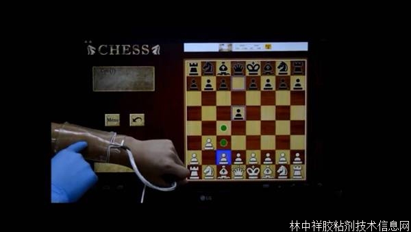 他們使用的聚丙烯酰胺水凝膠,含有氯化鋰鹽類,可以具有導(dǎo)體的作用,又可以幫助水凝膠保持水分。水凝膠板末端的電極,應(yīng)用相似的電壓,構(gòu)建整個(gè)系統(tǒng)統(tǒng)一的靜電場。當(dāng)手指觸摸該板時(shí),它關(guān)閉了水凝膠內(nèi)部的電路,讓電流從帶狀物的末端流進(jìn)觸摸點(diǎn)。在觸摸板的每個(gè)角落,有可以捕獲電流的電表監(jiān)測電信號。