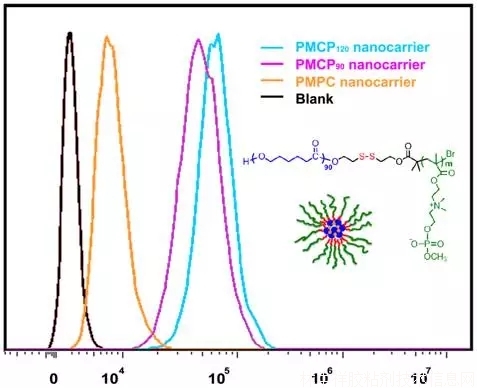 近日,該研究組充分利用PCPs對于細胞膜高效粘接和被真核細胞快速內(nèi)在化的特性,設(shè)計并合成了谷胱甘肽響應(yīng)的多價化磷酸膽堿的高分子載體材料(PCL-s-s-PMCP),他們通過調(diào)控分子鏈上磷酸膽堿的密度可以有效地控制細胞內(nèi)化的效率,同時利用腫瘤細胞內(nèi)外谷胱甘肽濃度的差異有效的提高了細胞內(nèi)藥物釋放效率,顯著提高了治療效果。這種細胞膜仿生的磷酸膽堿分子具有良好的生物相容性,多價膽堿磷酸與細胞膜之間可逆相互作用,在強化藥物靶向輸送,組織工程等方面展現(xiàn)出了廣闊的應(yīng)用前景。